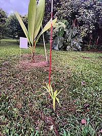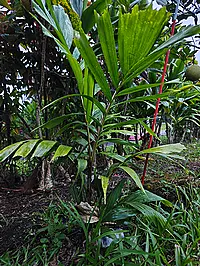 The Hillert Garden is located on the flanks of Mt. Hualalai, overlooking Kailua-Kona on the Big Island of Hawai‘i. The 4 acre tropical garden is home to a diverse collection of tropical and subtropical plants from around the world. The garden's extensive collection comprises almost 500 different species of plants, including palms, heliconias, and countless exotic tropical fruit trees. That's 250+ genera from 67 families! The palm collection itself, contains over 400 individual palms (family Arecaceae), covering over 250 different species (defined as taxa on the species level and/or below) from across 100+ genera.